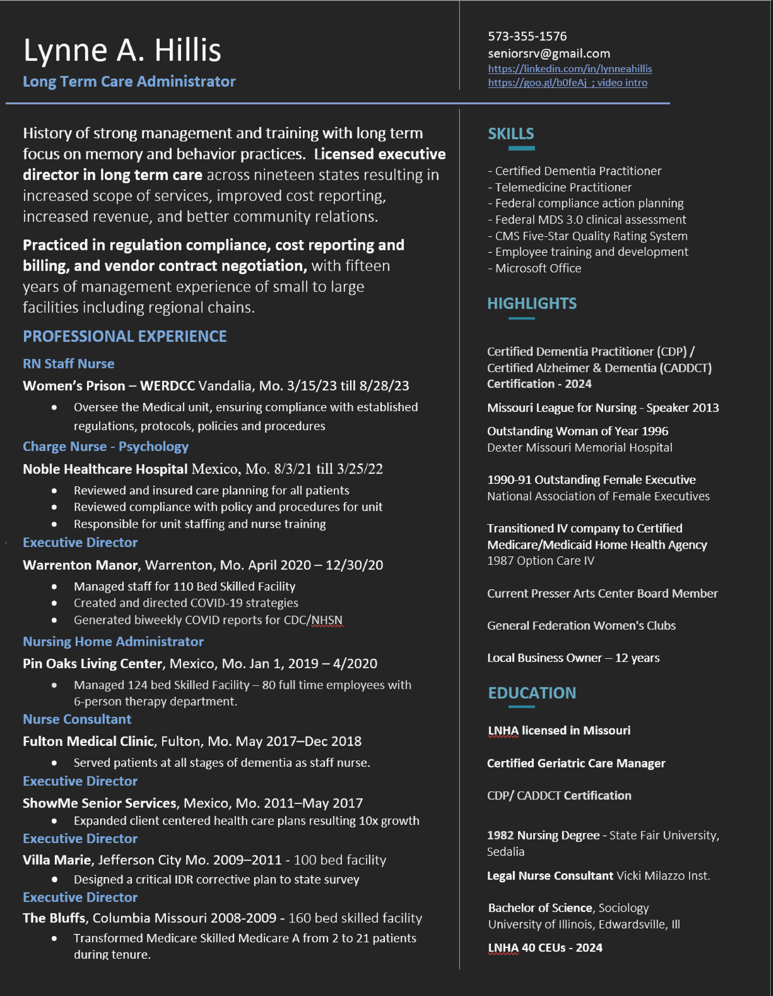 Bruce & Lynne Hillis -Established Long-Term Care Professionals